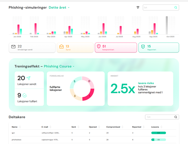 Simuleringene gir innsikt i hvor godt ansatte gjenkjenner mistenkelige meldinger, og viser hvor det trengs mer opplæring.